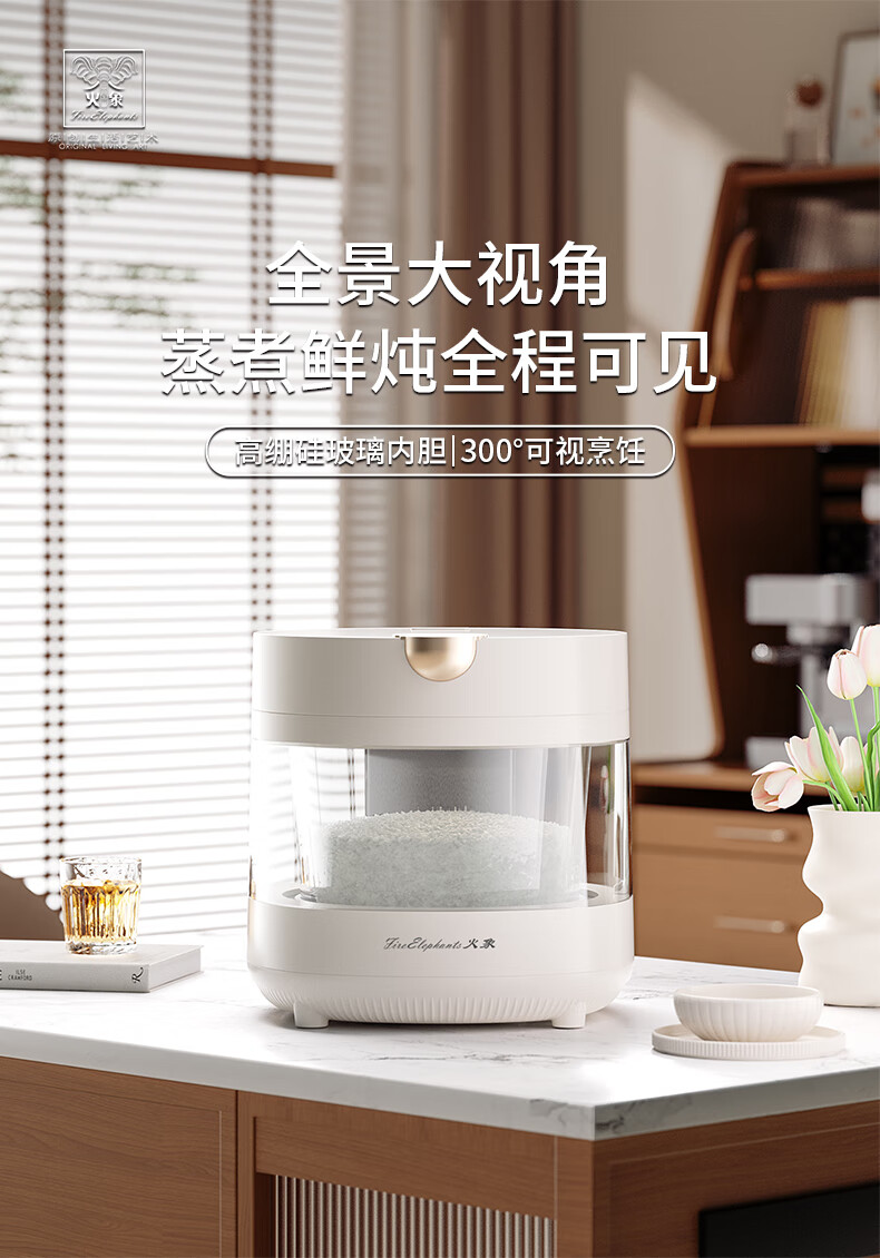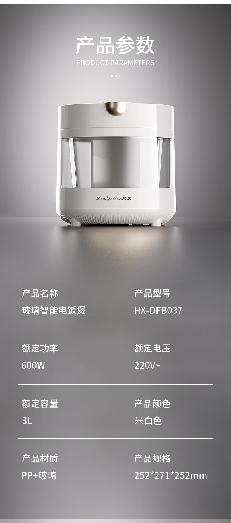 火象 智能玻璃电饭煲 网红款大容量电饭锅 全景大视角 高硼硅内胆 一键开盖 煮米饭 煲汤多功能饭煲 HX-DFB037 精美彩盒装