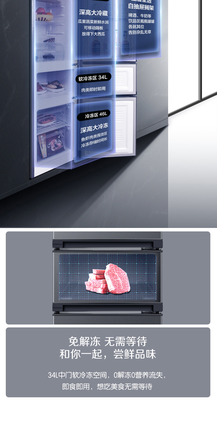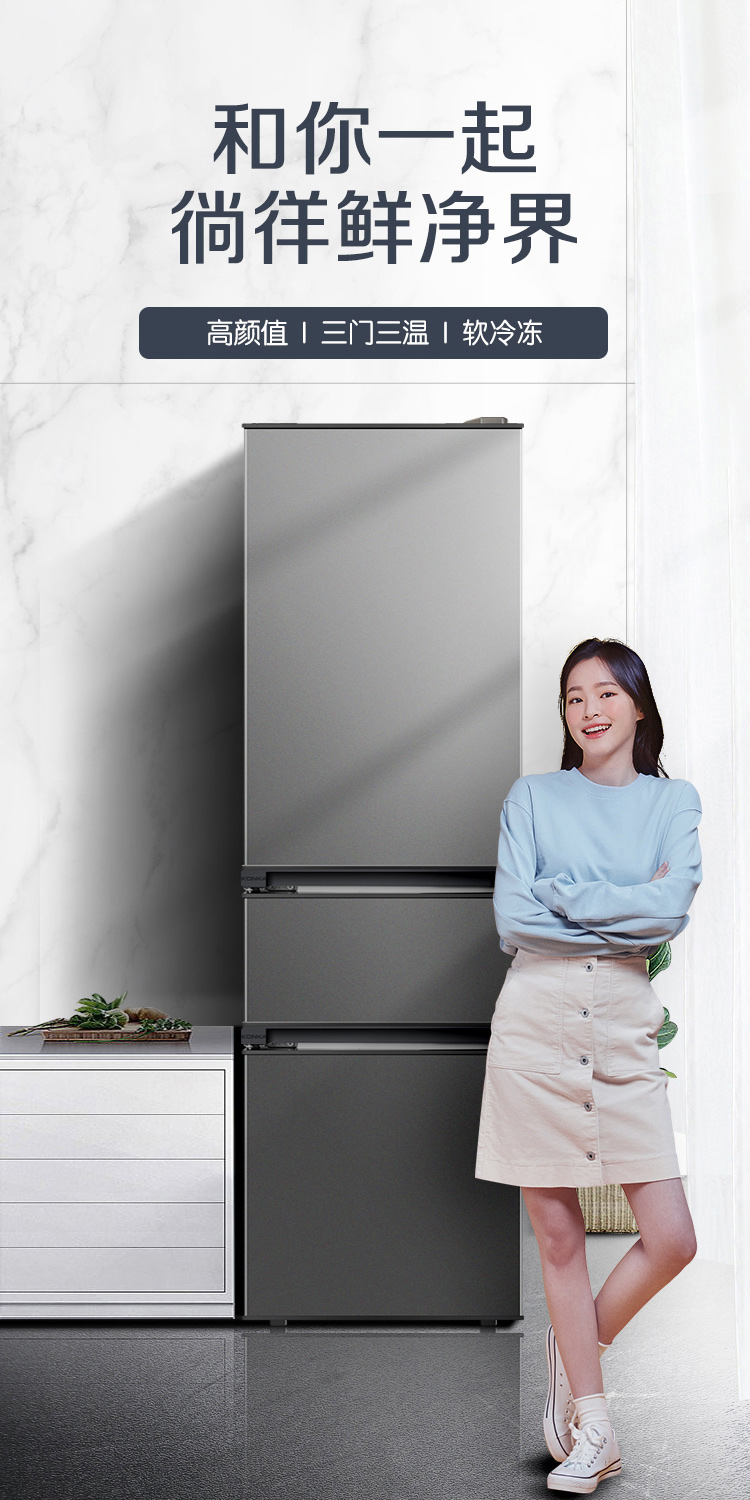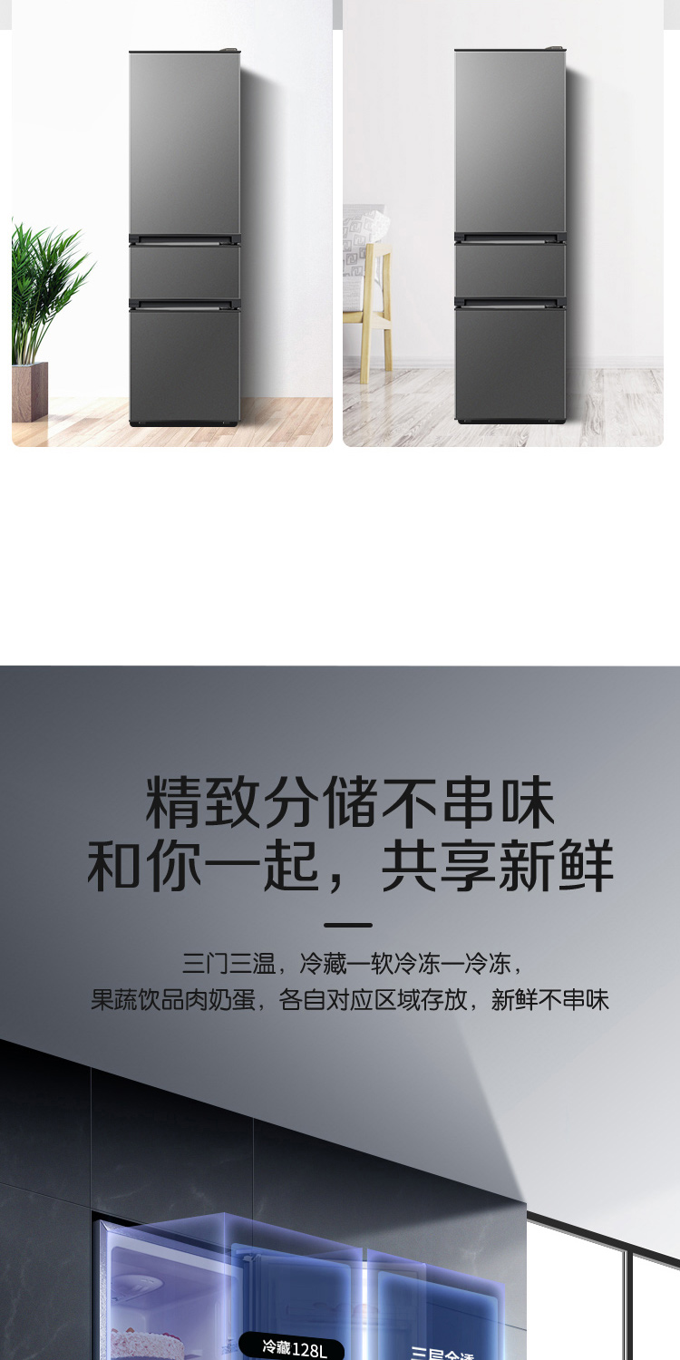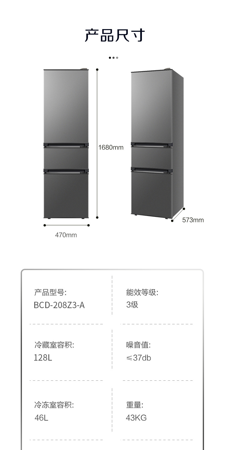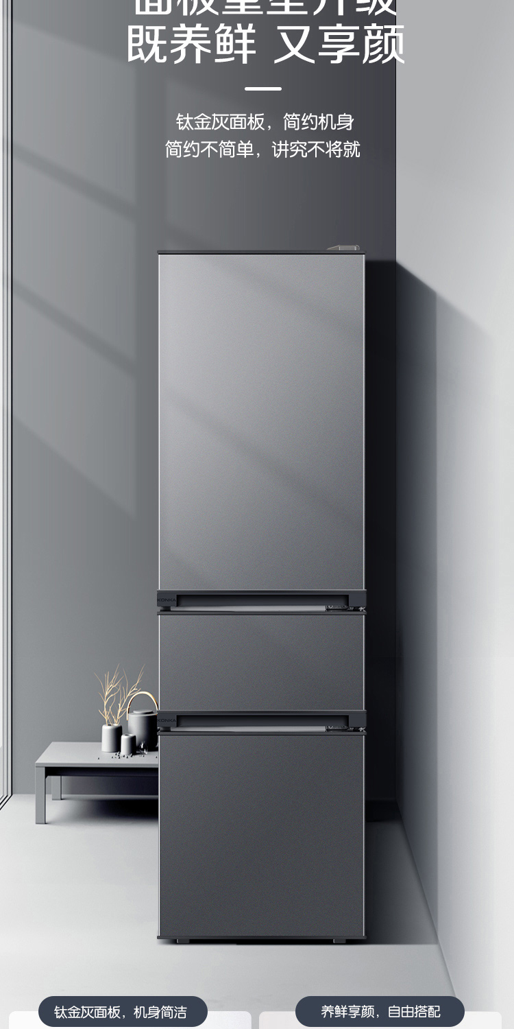 康佳 208L三门冰箱 家用租房小型电冰箱 节能保鲜BCD-208Z3-A 送货上楼【售完下架】