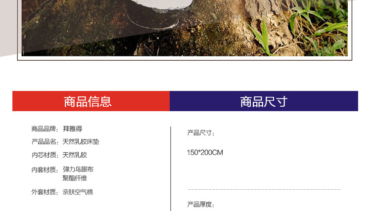拜雅得 泰国乳胶床垫 150*200*5cm 天然乳胶垫子 榻榻米床垫