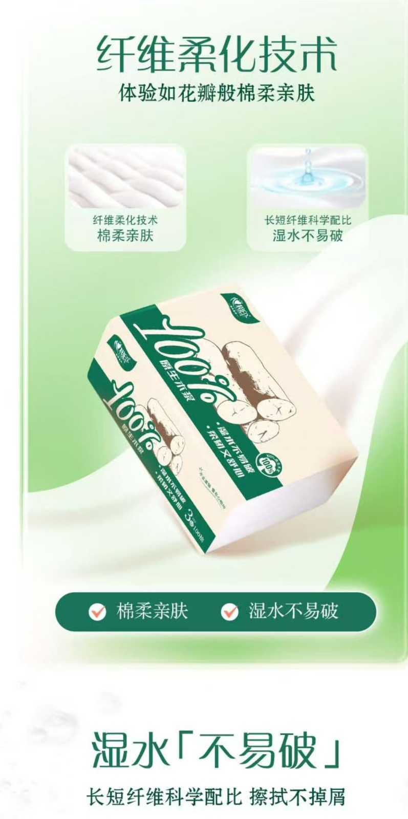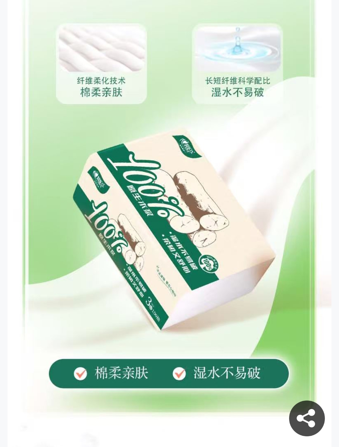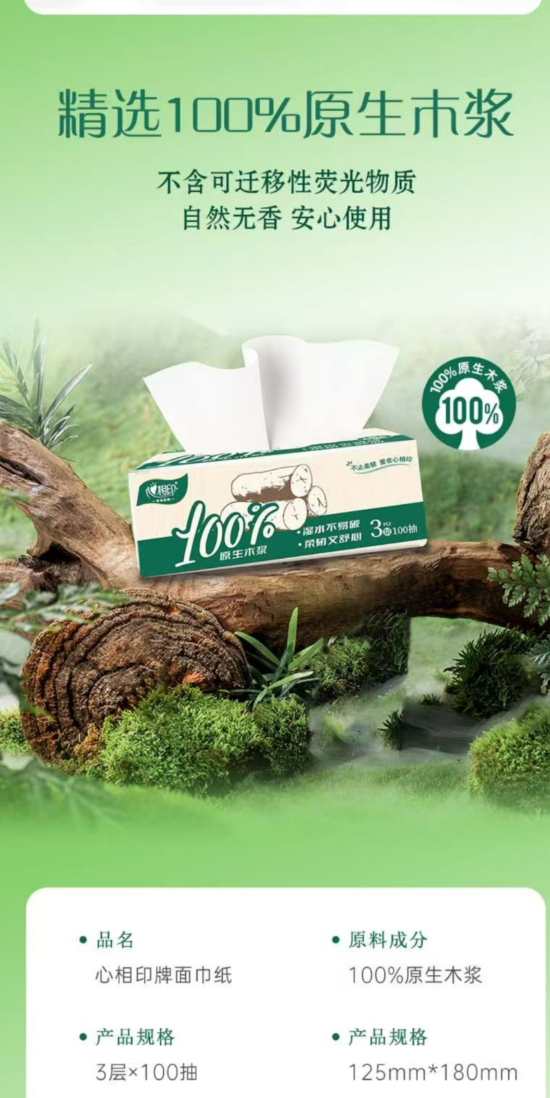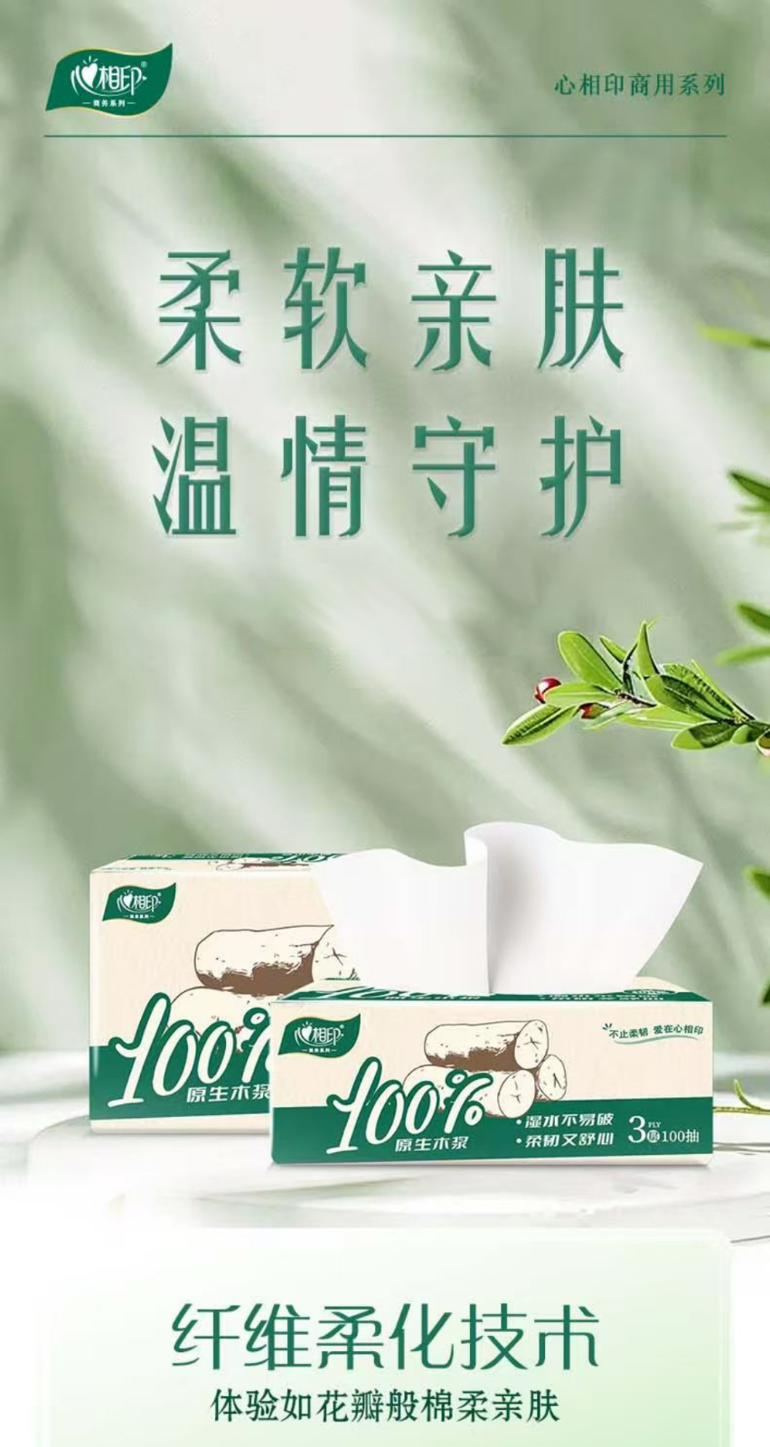 心相印 原生木浆抽纸三层加厚柔软升级湿水不易破 3层100抽10包