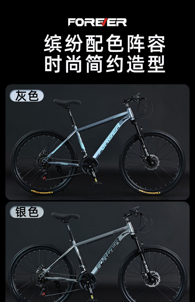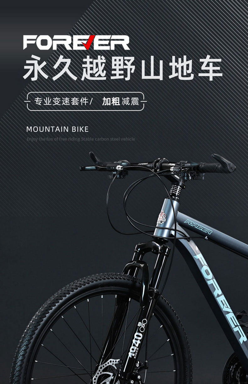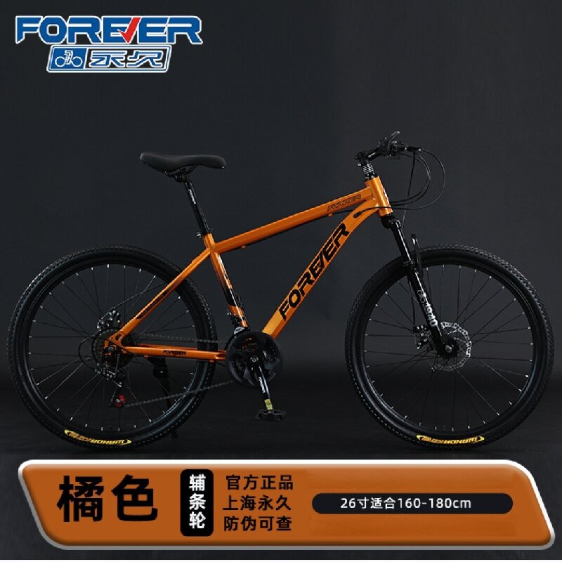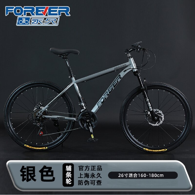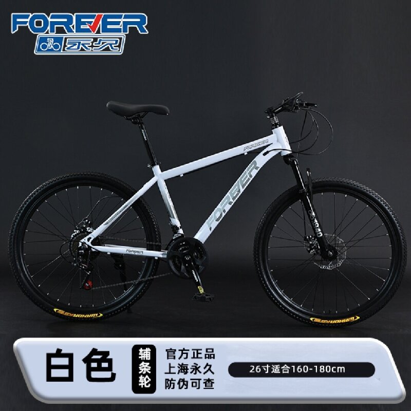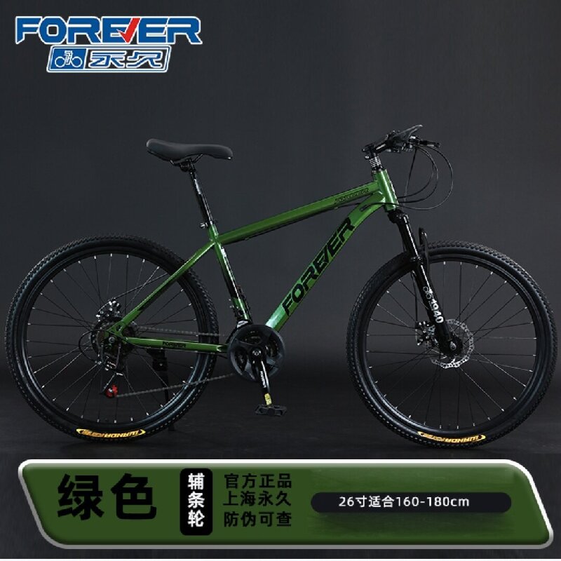 【永久 FOREVER】 高品质老牌山地车 升级款高配三套轴承 双碟刹 山地车 学生车自行车 户外踏青骑行 山地自行车26寸21速减震单车户外骑行变速越野学生自行车 五个颜色规格可选 (下单时请注明)