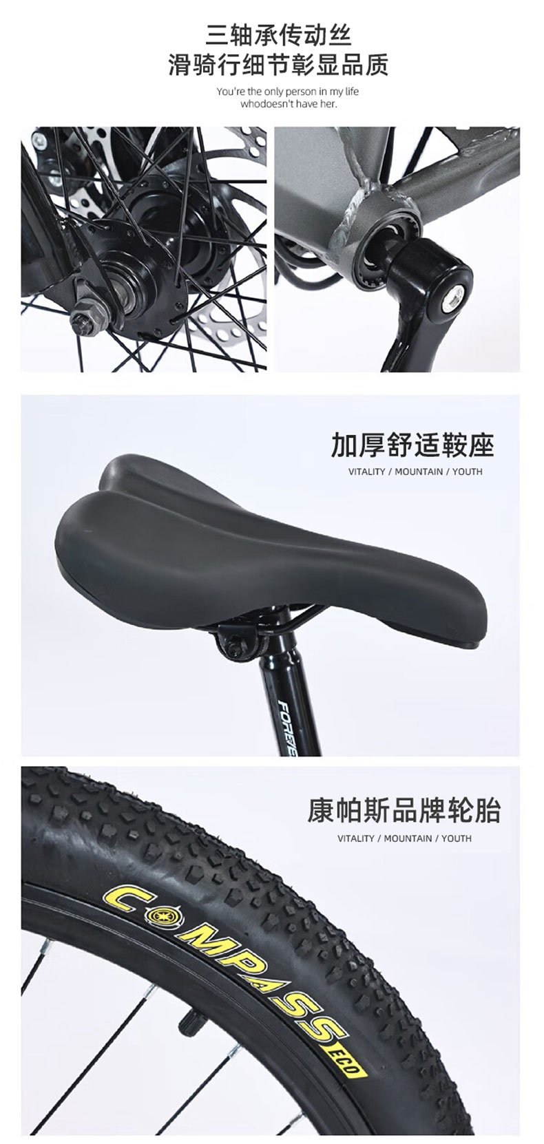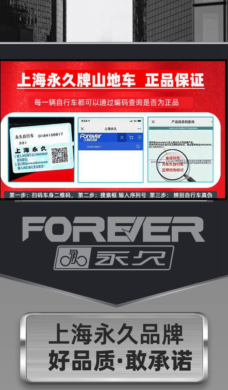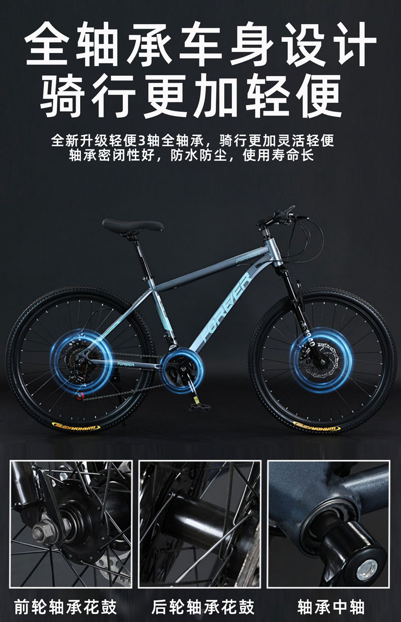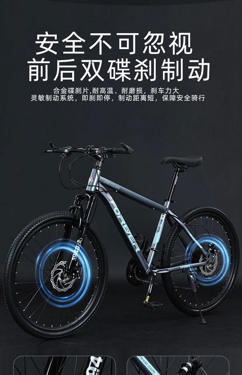 【永久 FOREVER】 高品质老牌山地车 升级款高配三套轴承 双碟刹 山地车 学生车自行车 户外踏青骑行 山地自行车26寸21速减震单车户外骑行变速越野学生自行车 五个颜色规格可选 (下单时请注明)