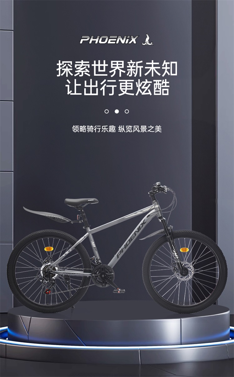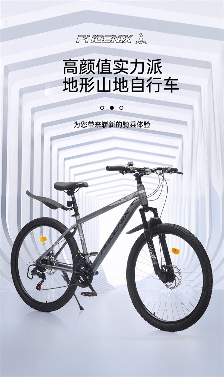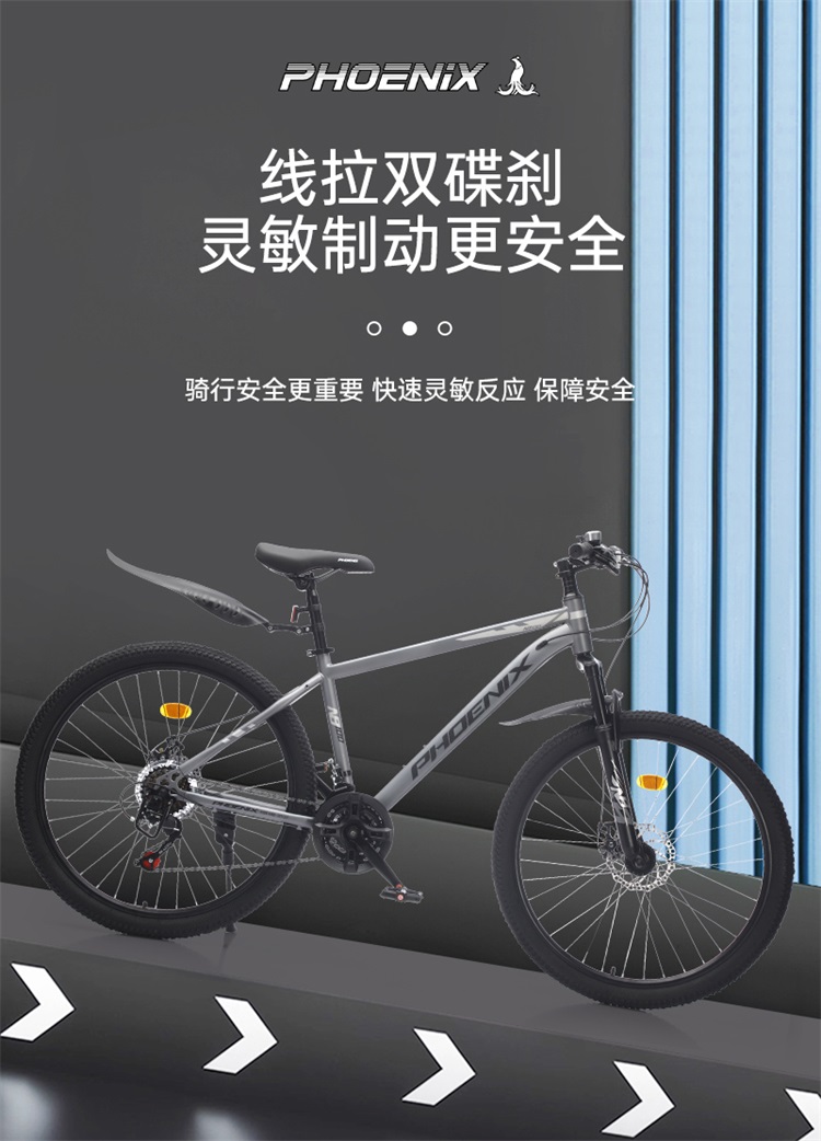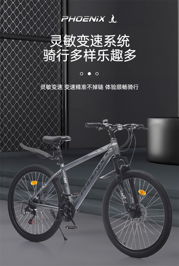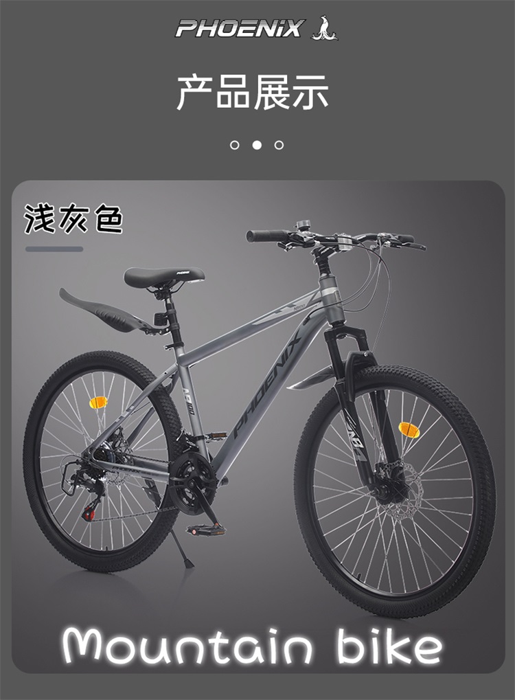 凤凰26寸升级高配款山地自行车霸王龙 21速高碳钢车架+加厚防滑轮 中华老字号 成人青少年学生男女士变速单车 浅灰色YS9309-1 通勤健身 加厚双层包装【开箱验货 破损拒收 请按说明安装】