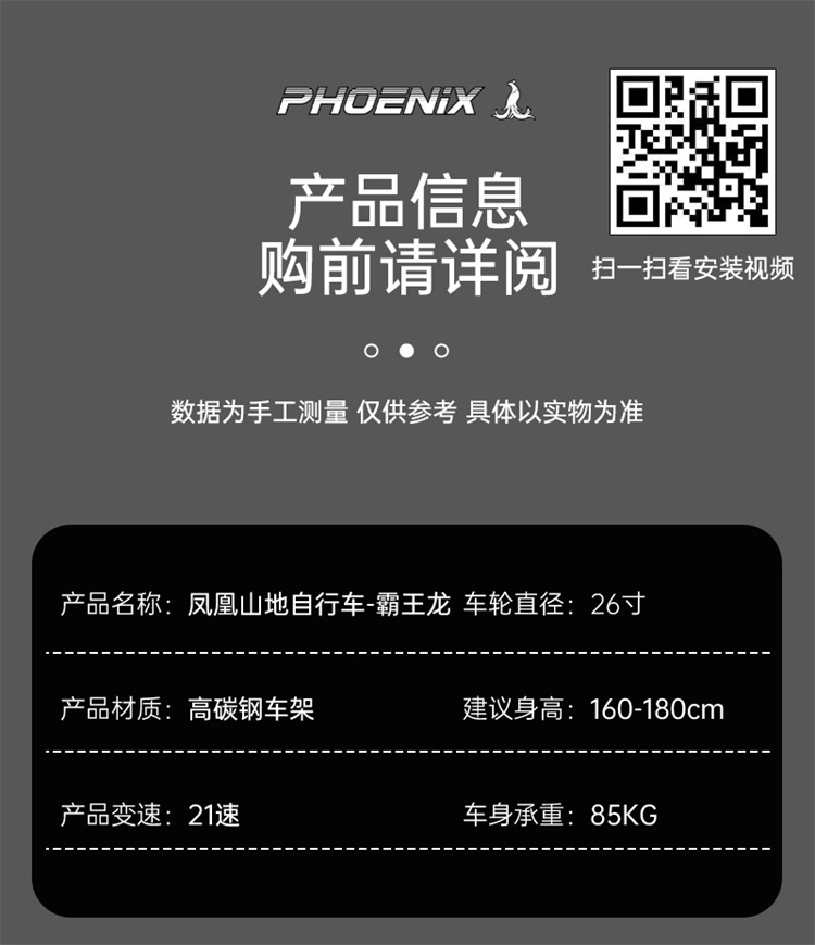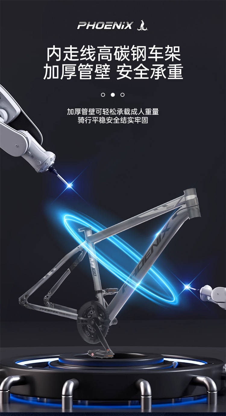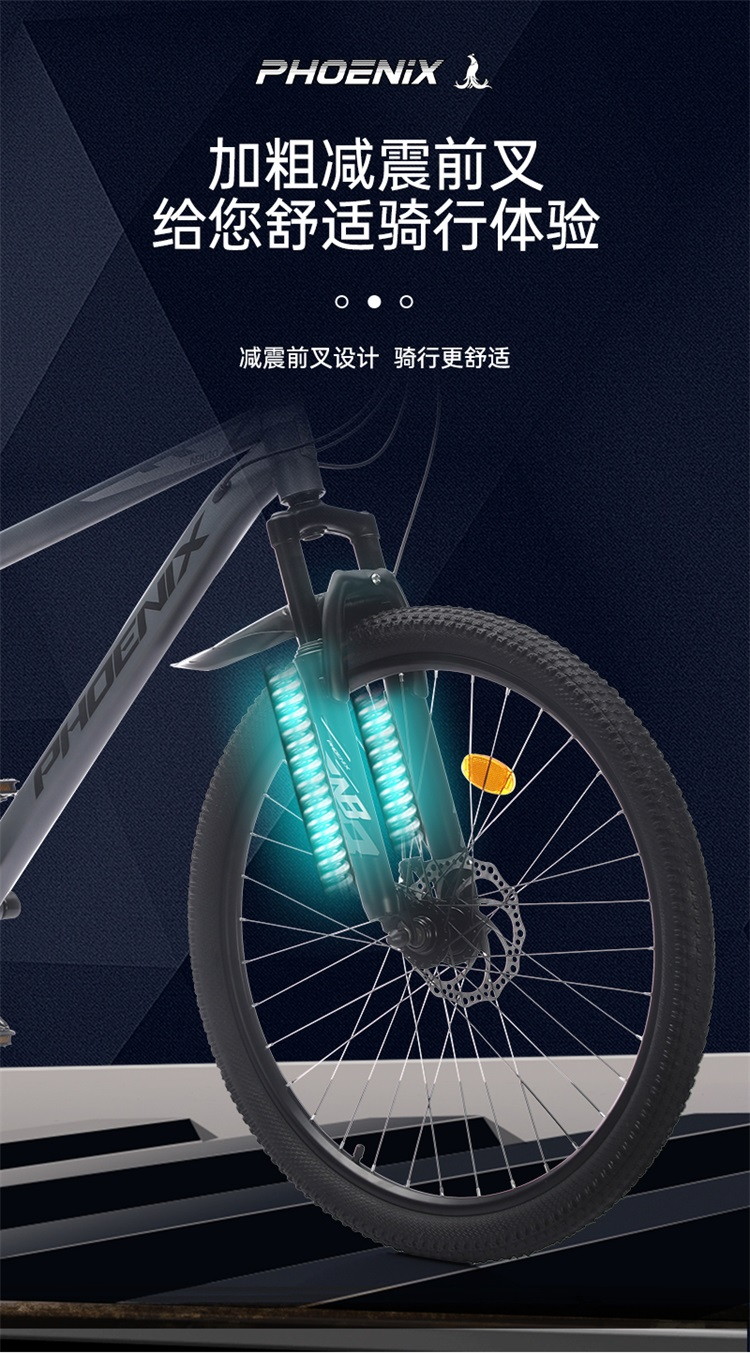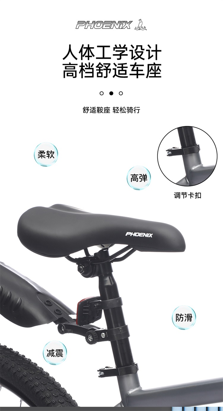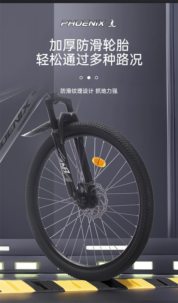 凤凰26寸升级高配款山地自行车霸王龙 21速高碳钢车架+加厚防滑轮 中华老字号 成人青少年学生男女士变速单车 浅灰色YS9309-1 通勤健身 加厚双层包装【开箱验货 破损拒收 请按说明安装】