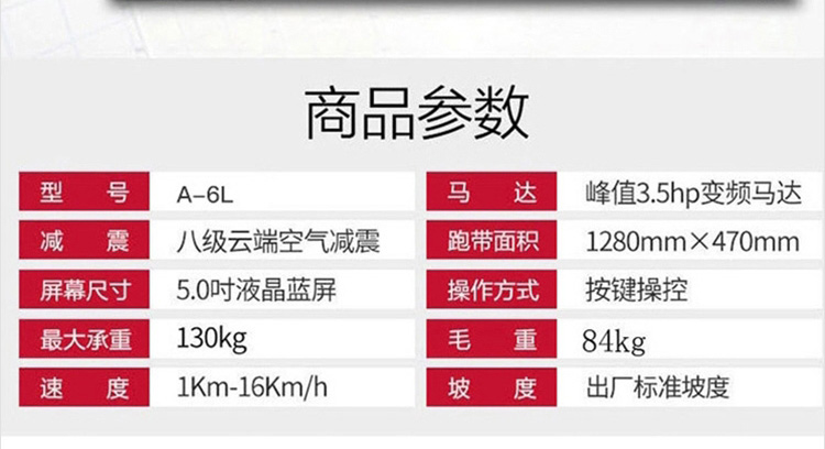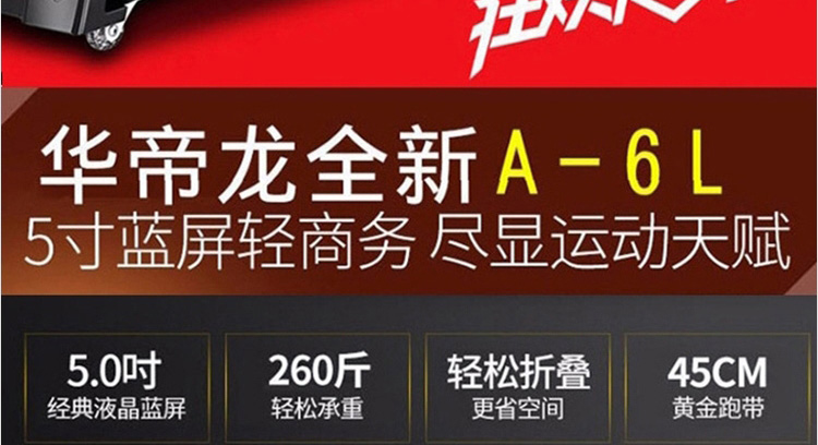 华帝龙 跑步机 豪华智能款升级款轻商务跑步机 健身器材 家用宽跑带减震折叠健身器材 单功能折叠健身器材A-6L