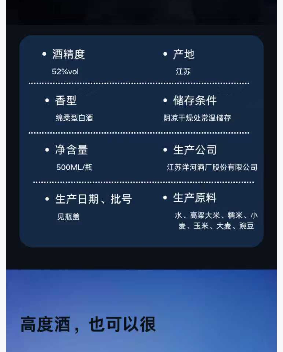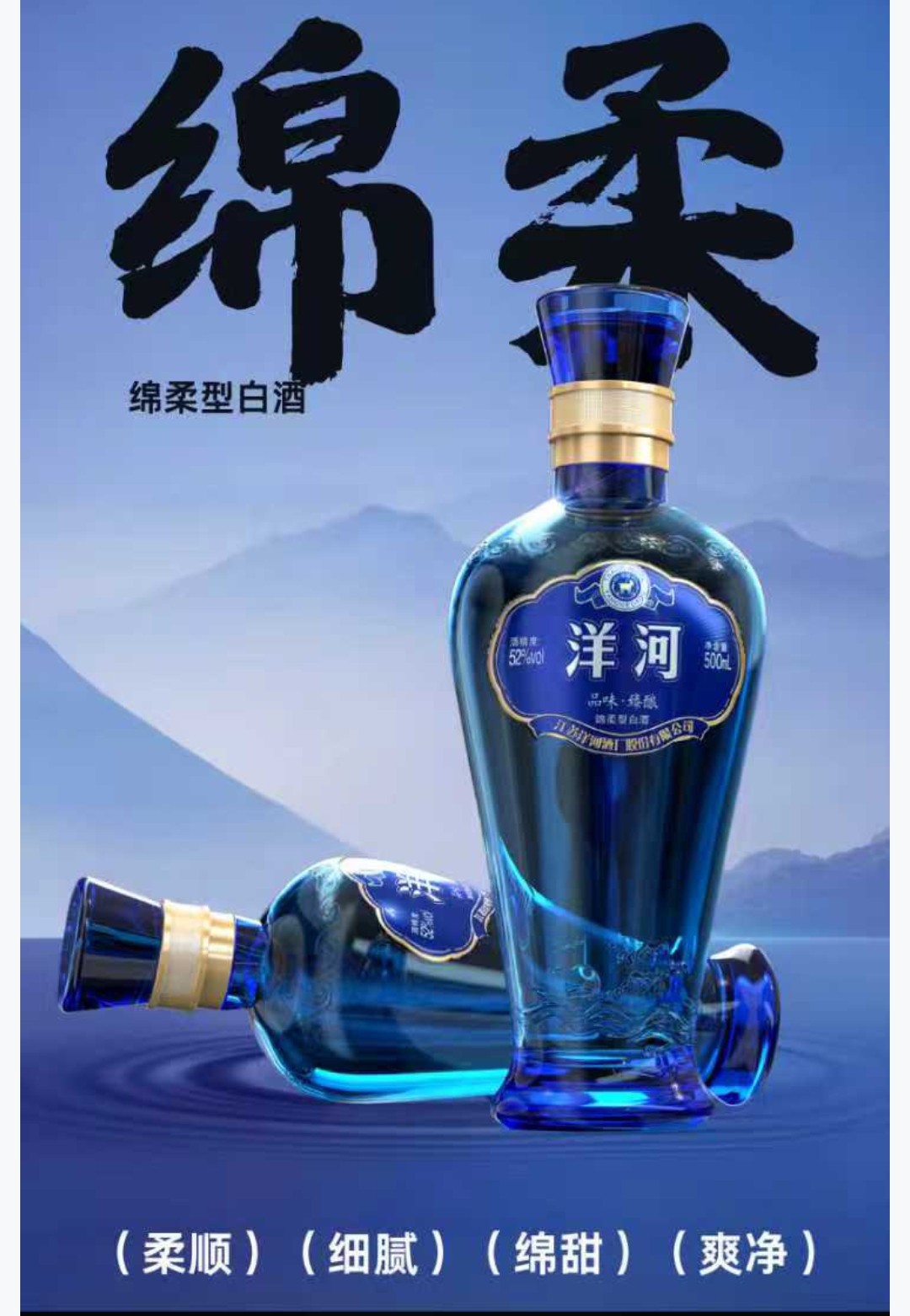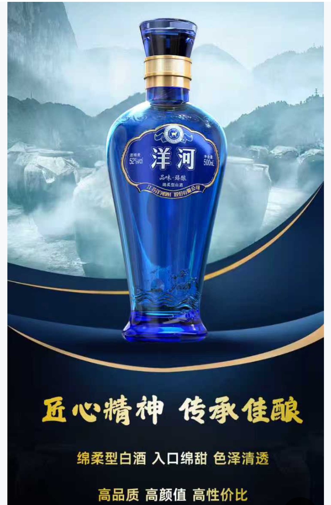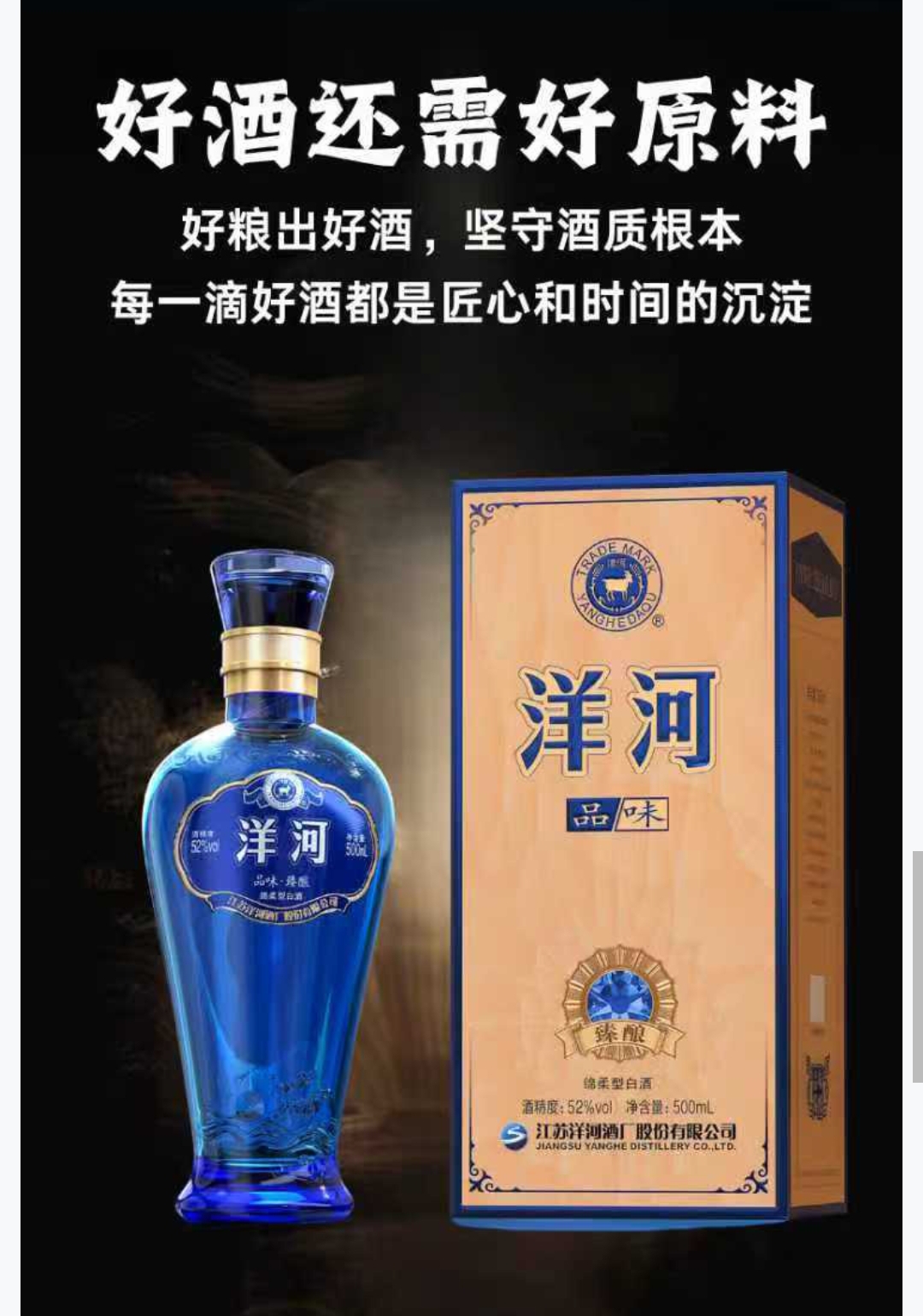 洋河 品味臻酿 绵柔型白酒52度 500ml/ 瓶x6瓶/箱送3个手提袋