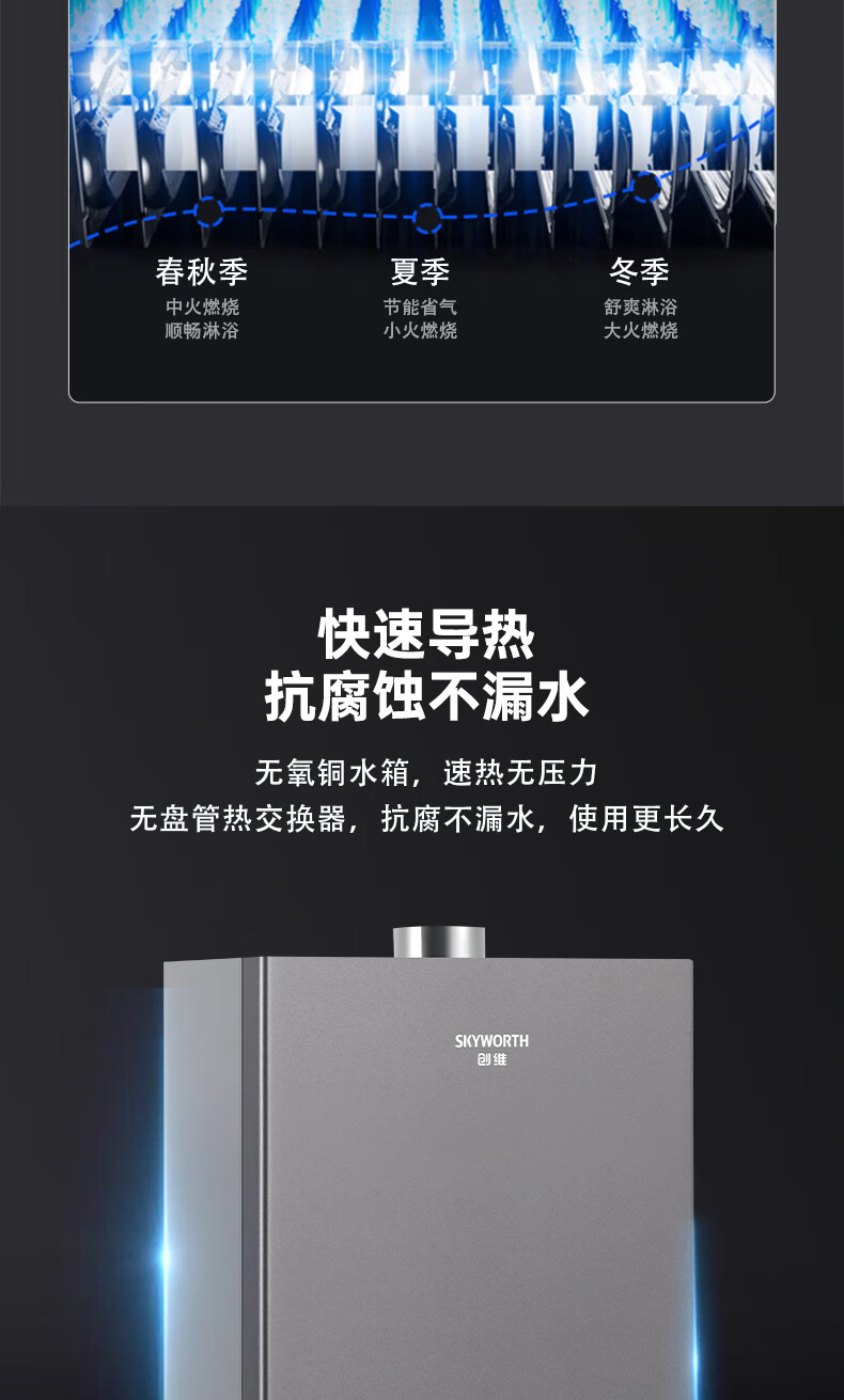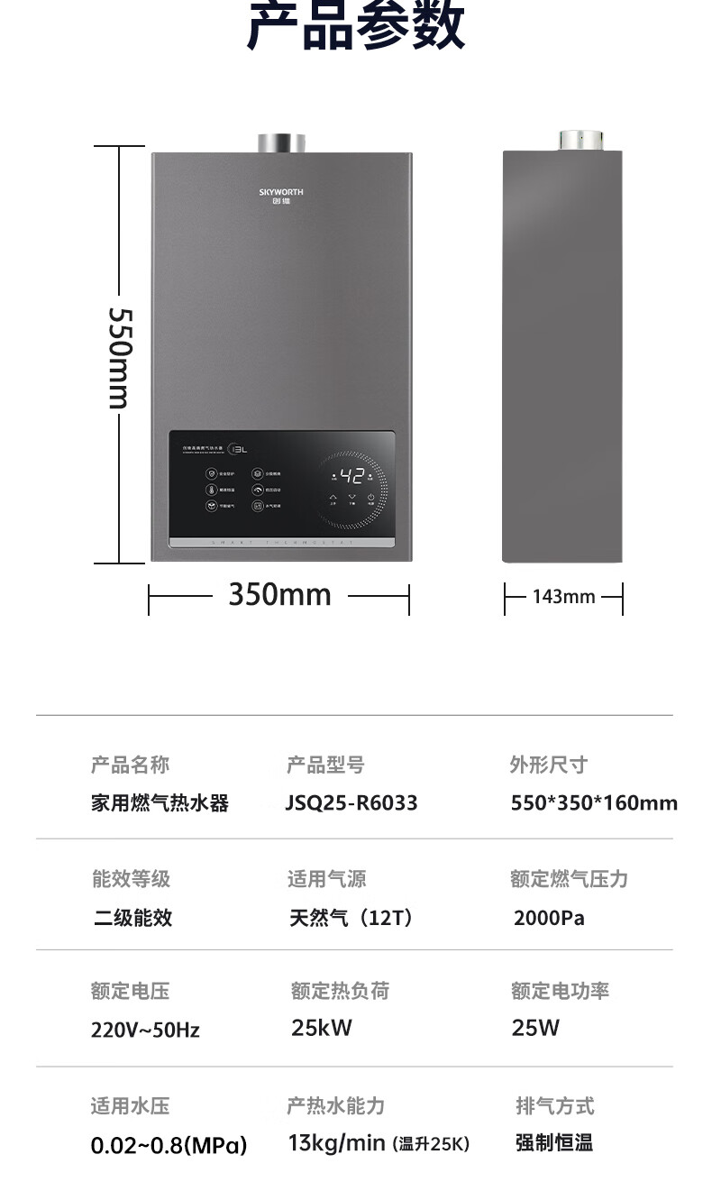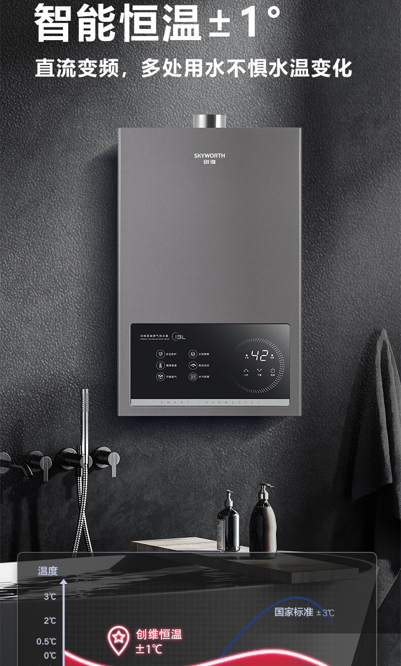 创维13升燃气热水器 变频节能 智能恒温 多重防护 JSQ25-R6033 基础安装费55/台 安装电话95105555
