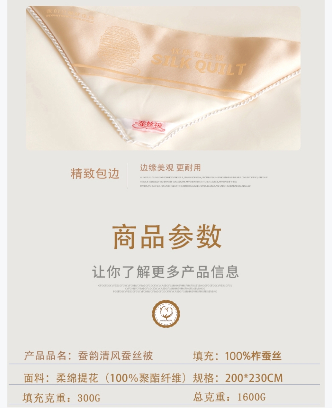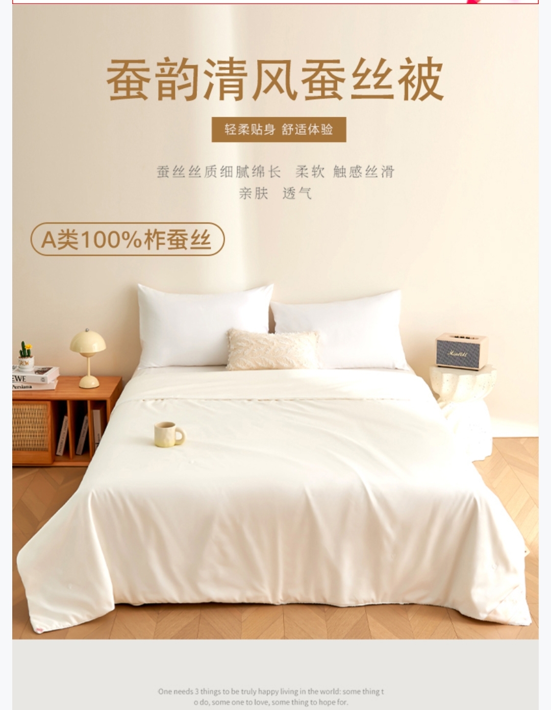 罗曼罗兰蚕韵清风蚕丝被 空调被 A类抗菌可水洗四季可用 200cm*230cm 100%柞蚕丝 亲肤面料舒适柔软