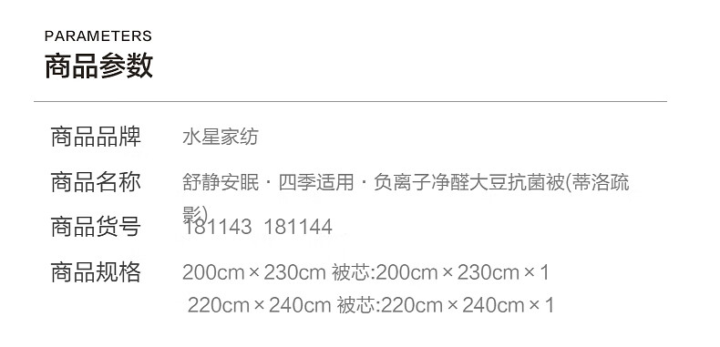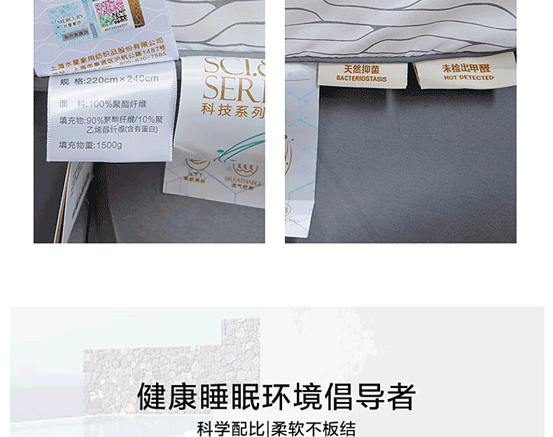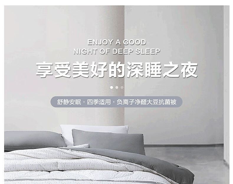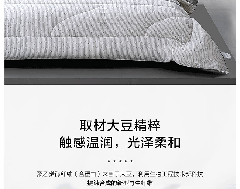 水星家纺 负离子净醛抗菌被 简约高级木质灰四季被 大豆被子 蒂洛疏影 200cm×230cm填充物重:1300g 2.6斤