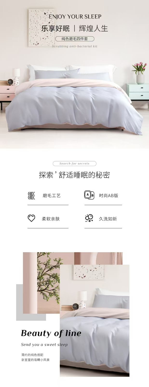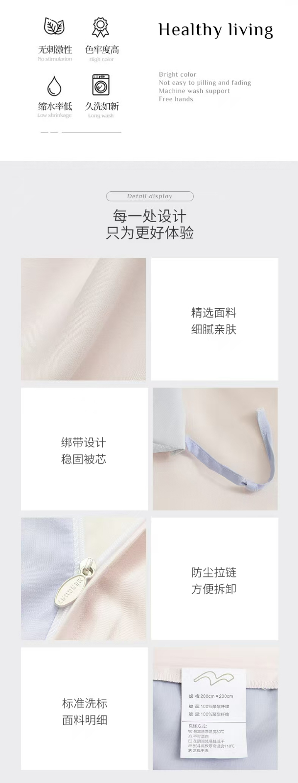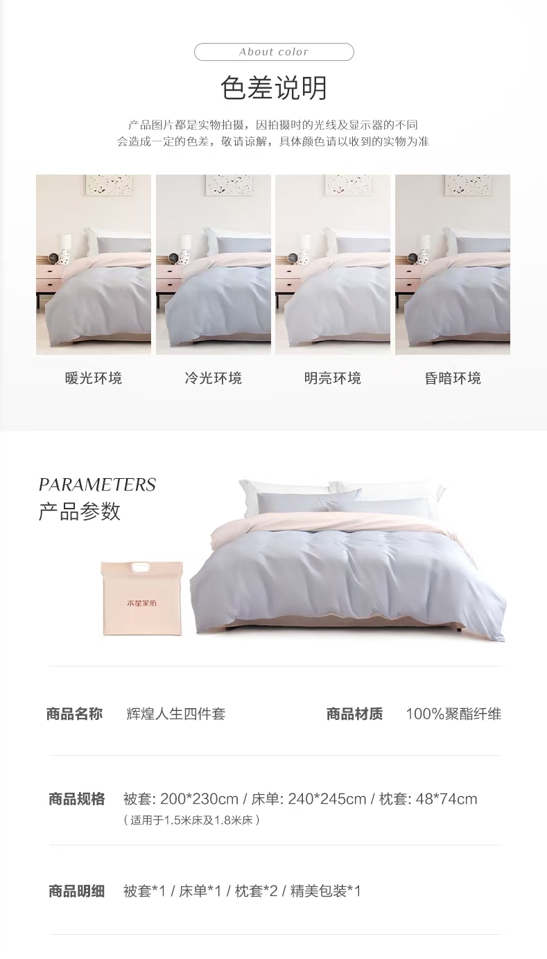 水星家纺 床上用品纯色磨毛四件套 辉煌人生 2*2.3米【100%聚酯纤维】