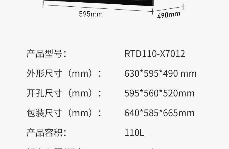 SKYWORTH创维消毒柜家用消毒柜嵌入式高温消毒碗柜大容量消毒柜RTD110-X7012触屏操作二星级【不包安装】