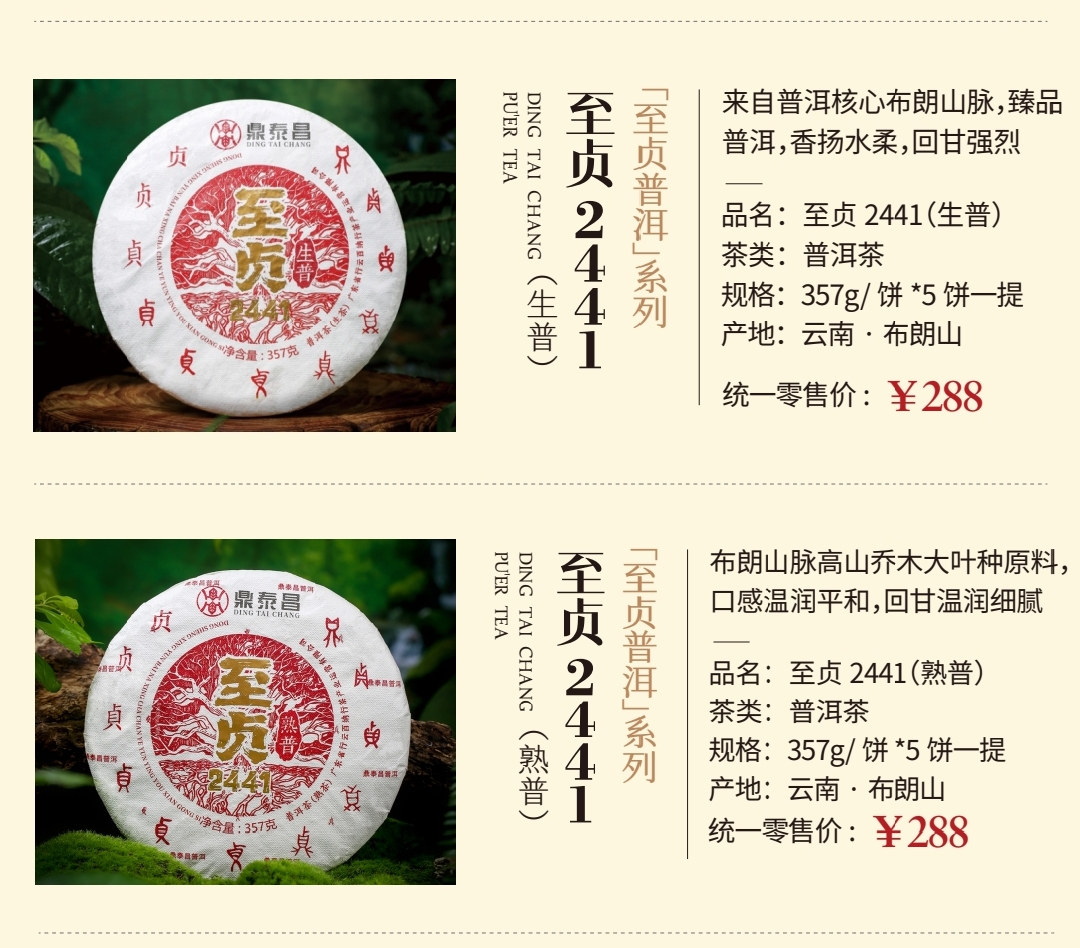 鼎泰昌 高端收藏普洱茶系列 357g/饼*5饼一提
