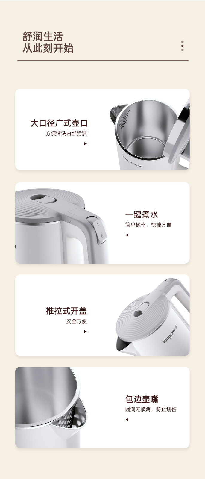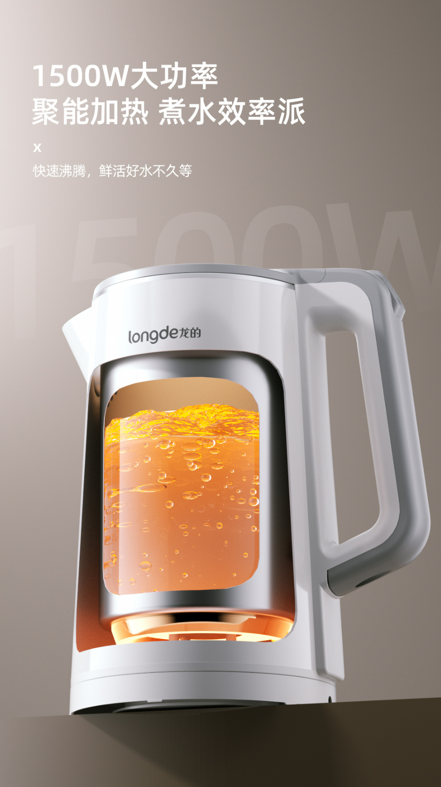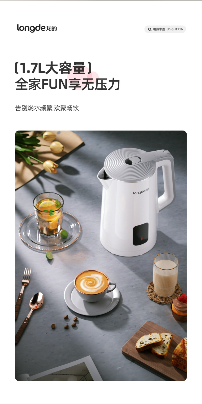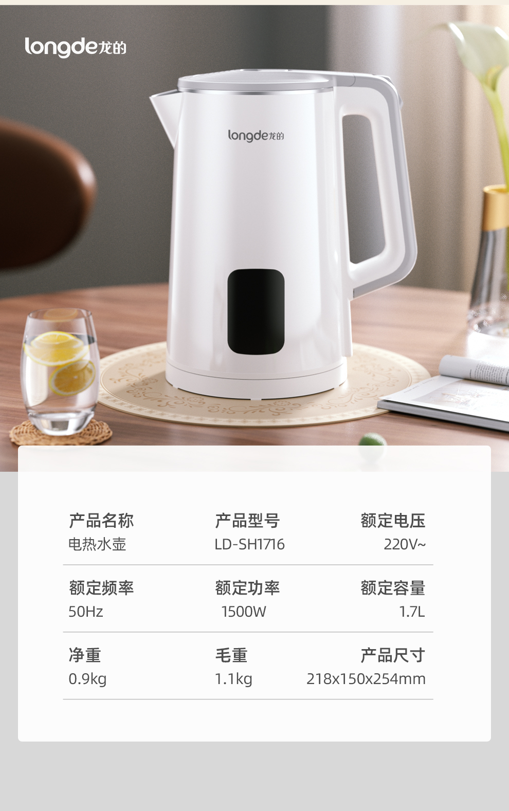 龙的电热水壶家用烧水壶1500W快速加热煮水壶 1.7L LD-SH1716