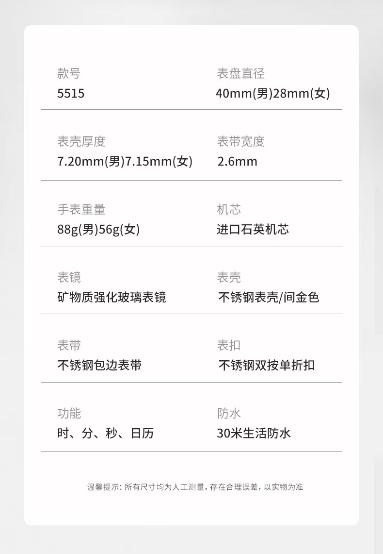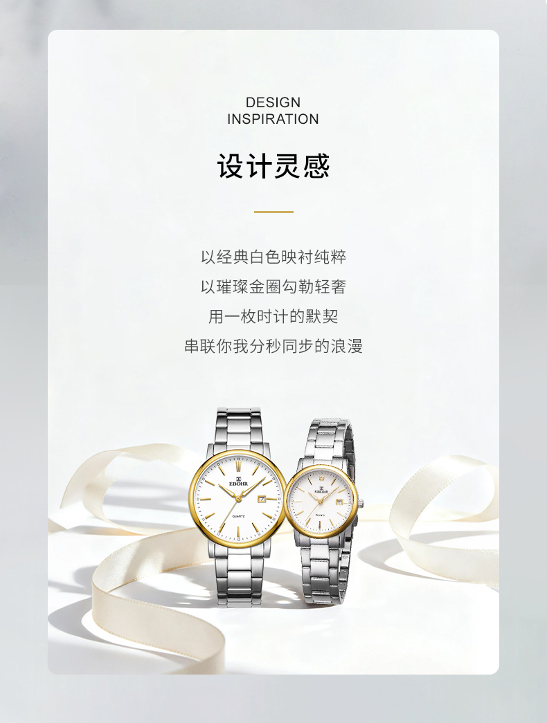 依波EBOHR手表 时尚超薄手表情侣手表 石英表送男女友生日礼物 精美包装盒5515系列【春节假期2月6日16点-2月23日不发货】