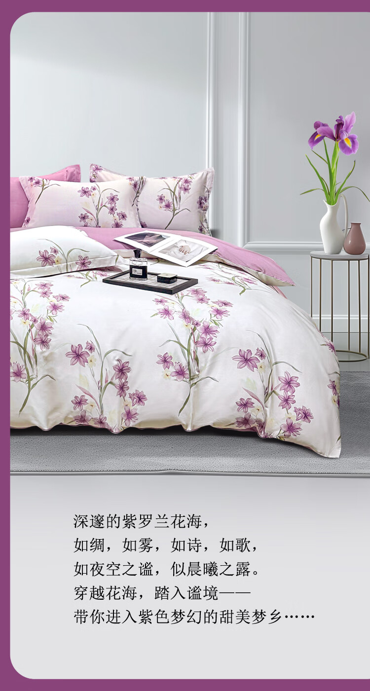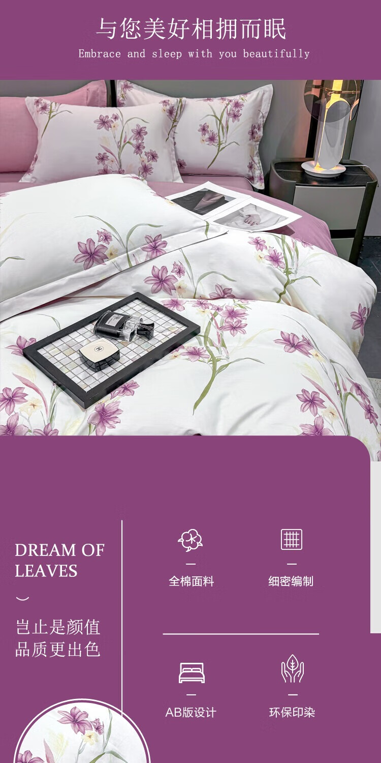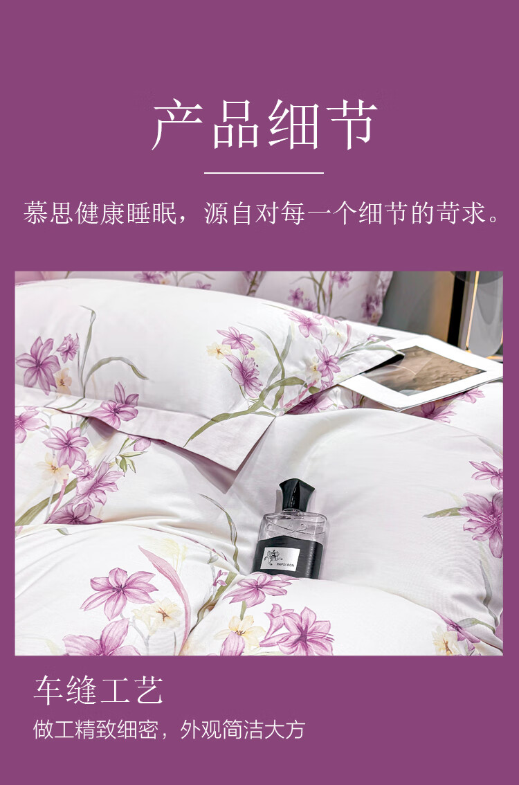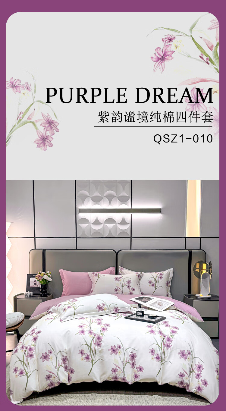 慕思纯棉四件套紫韵谧境纯棉四件套 200*230 全棉面料时尚AB面精美包装礼盒QSZ1-010 贴身礼品 不支持无理由退换货