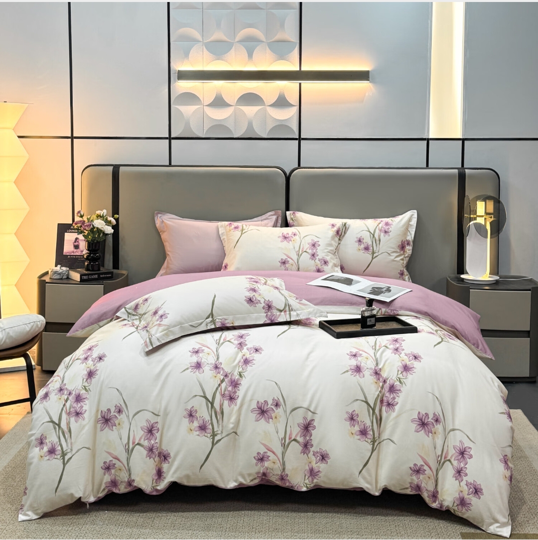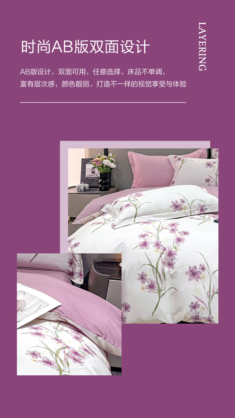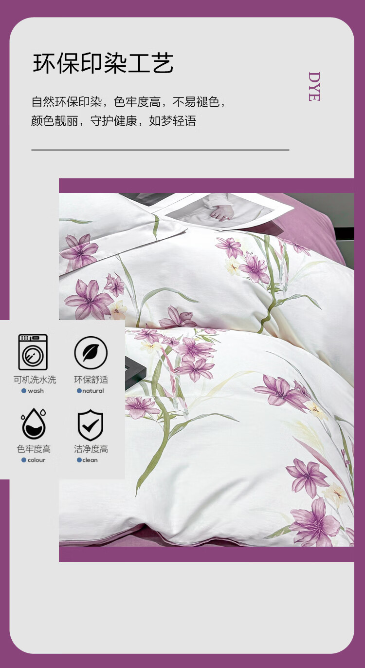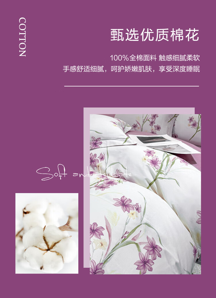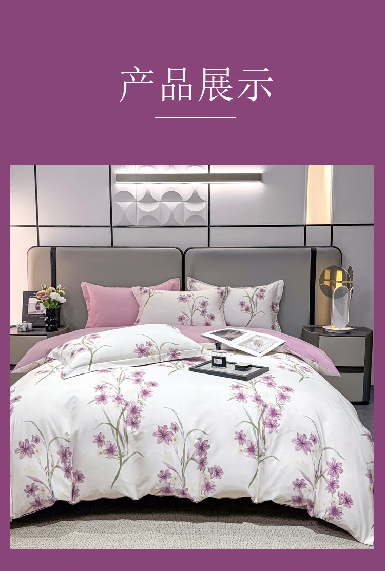 慕思纯棉四件套紫韵谧境纯棉四件套 200*230 全棉面料时尚AB面精美包装礼盒QSZ1-010 贴身礼品 不支持无理由退换货