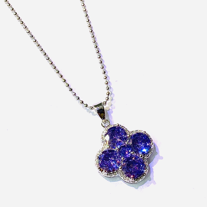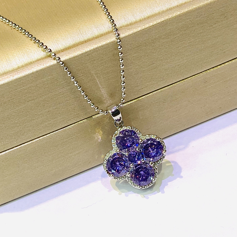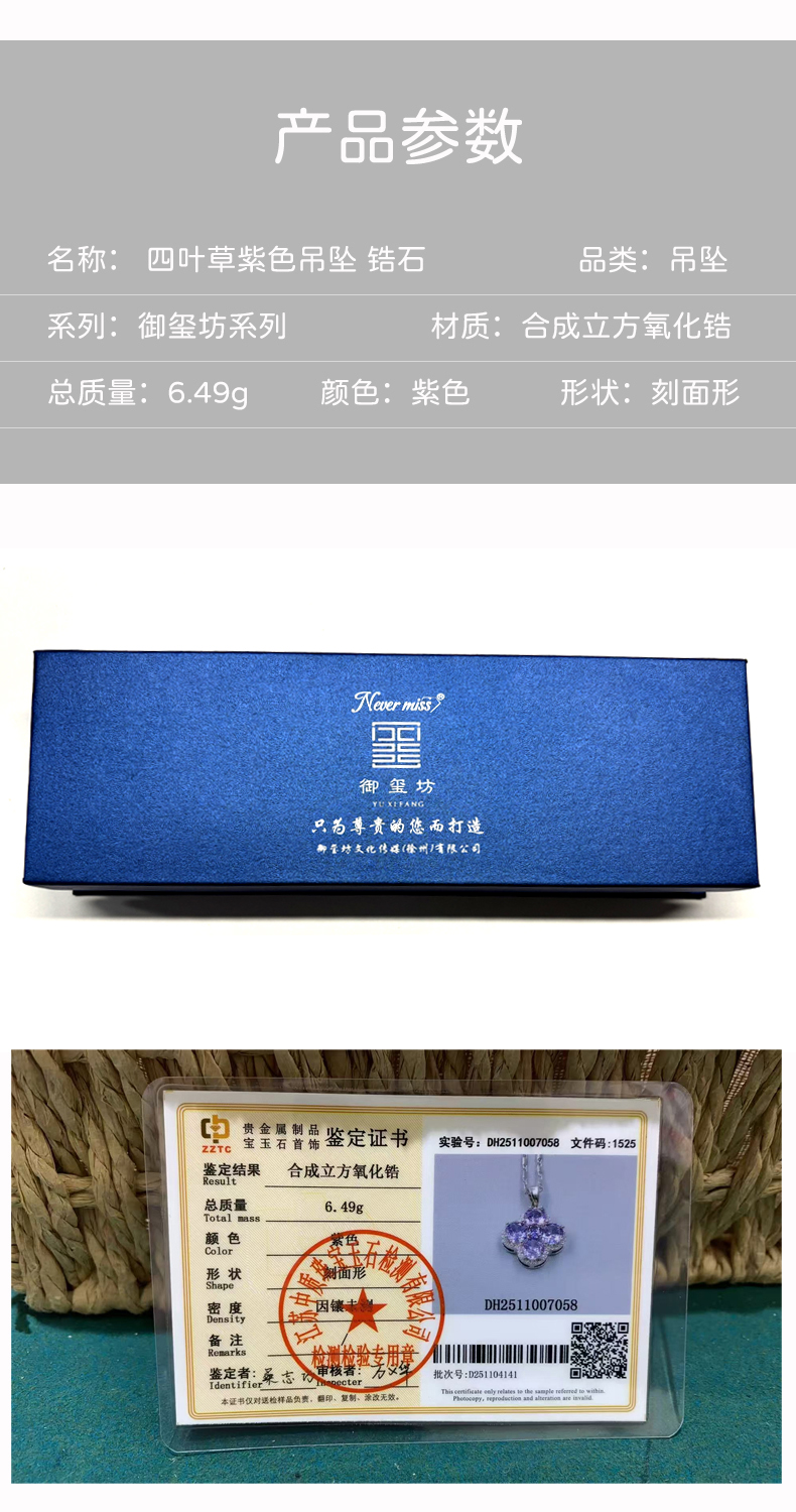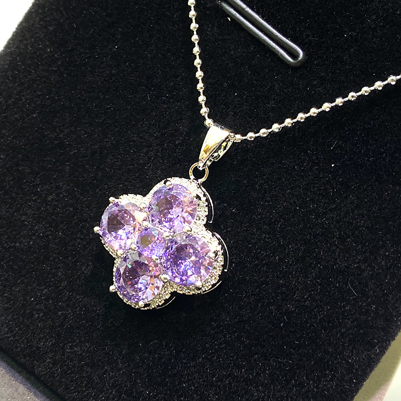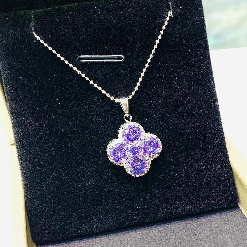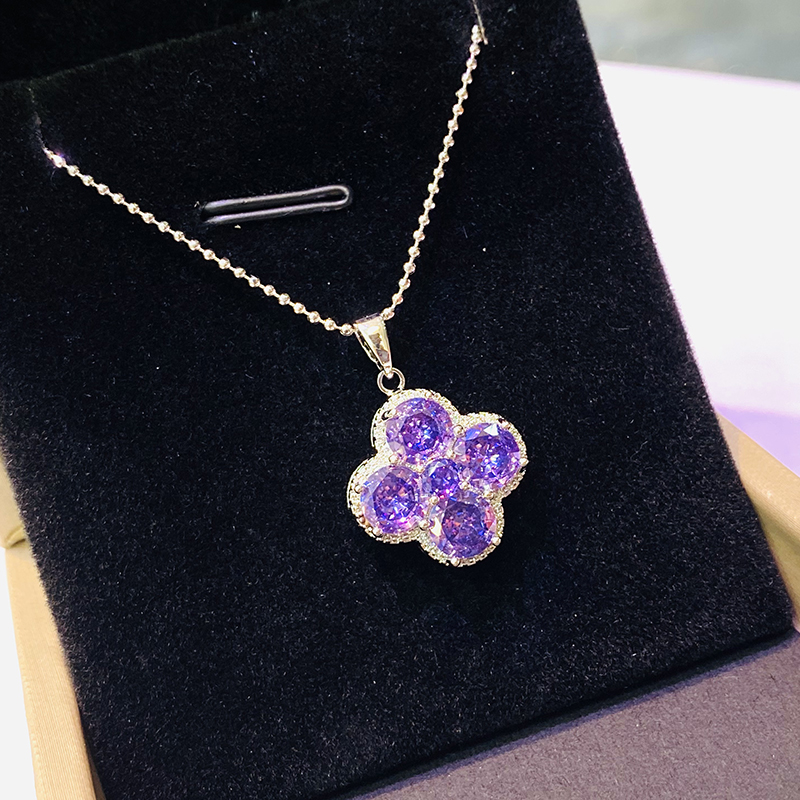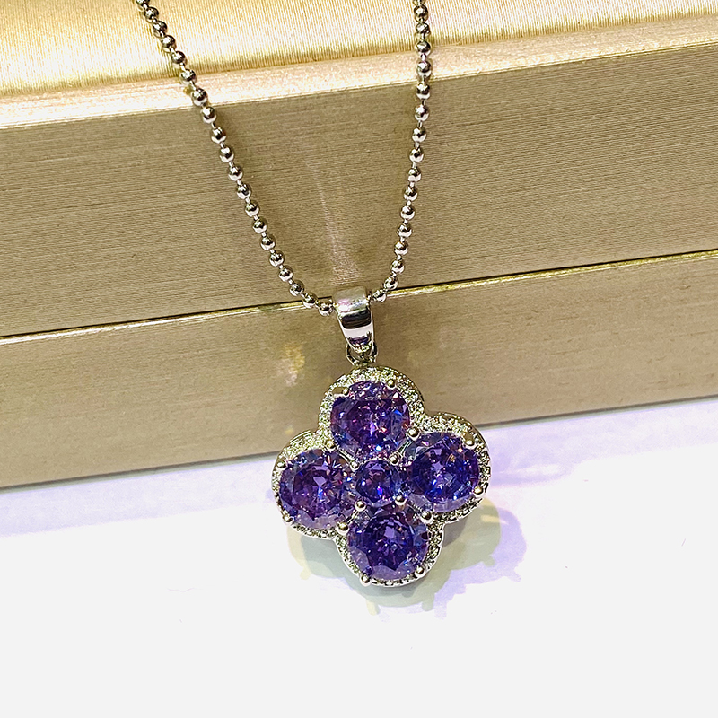 御玺坊系列 四叶草紫色吊坠项链 配饰首饰 锆石 单只附赠精美礼盒【一证一物】