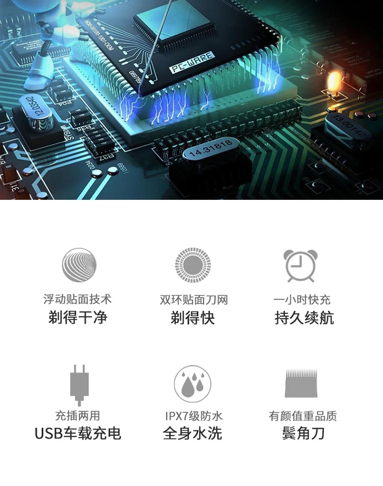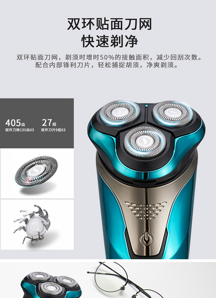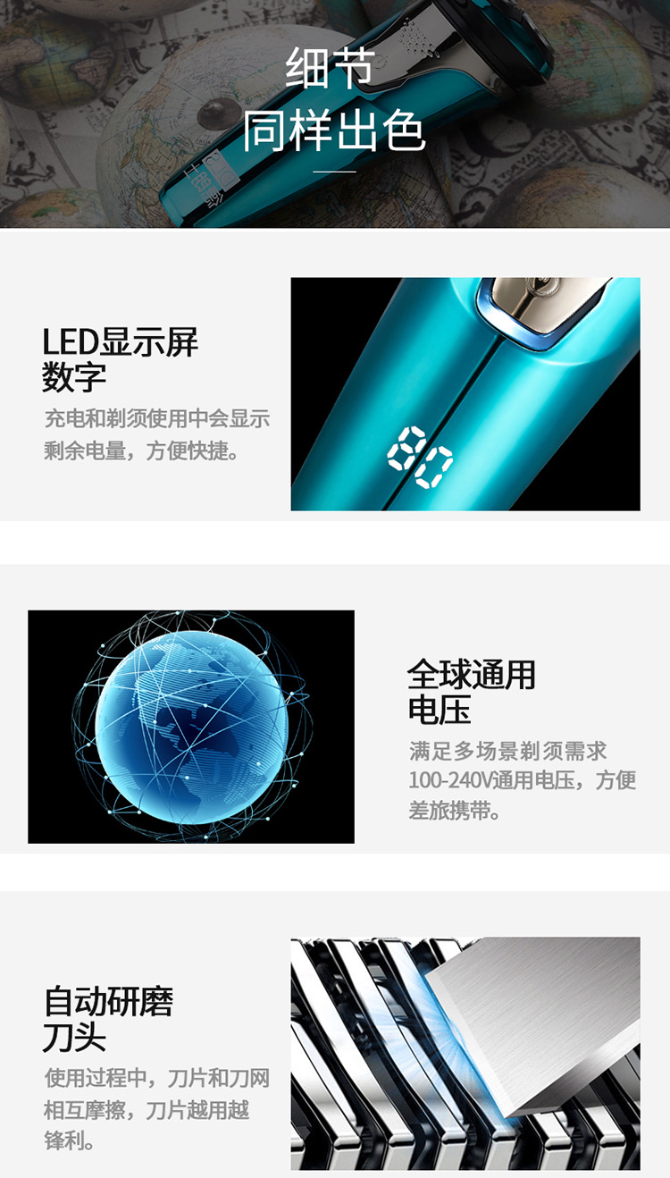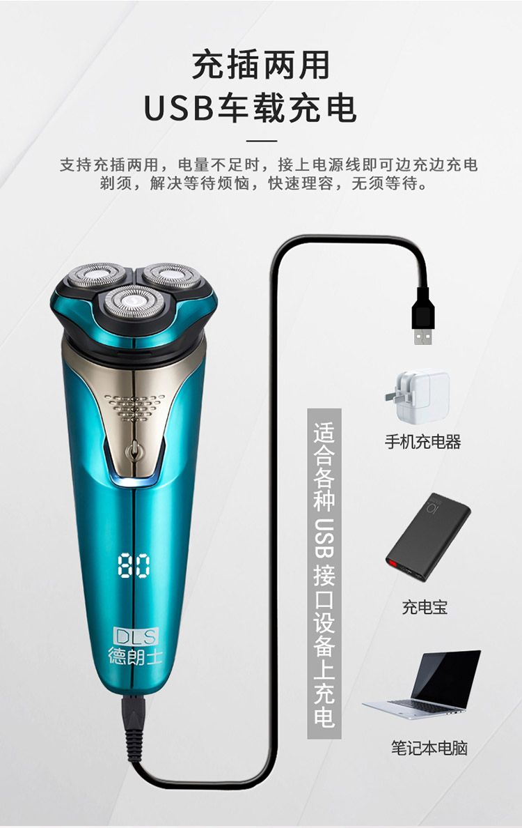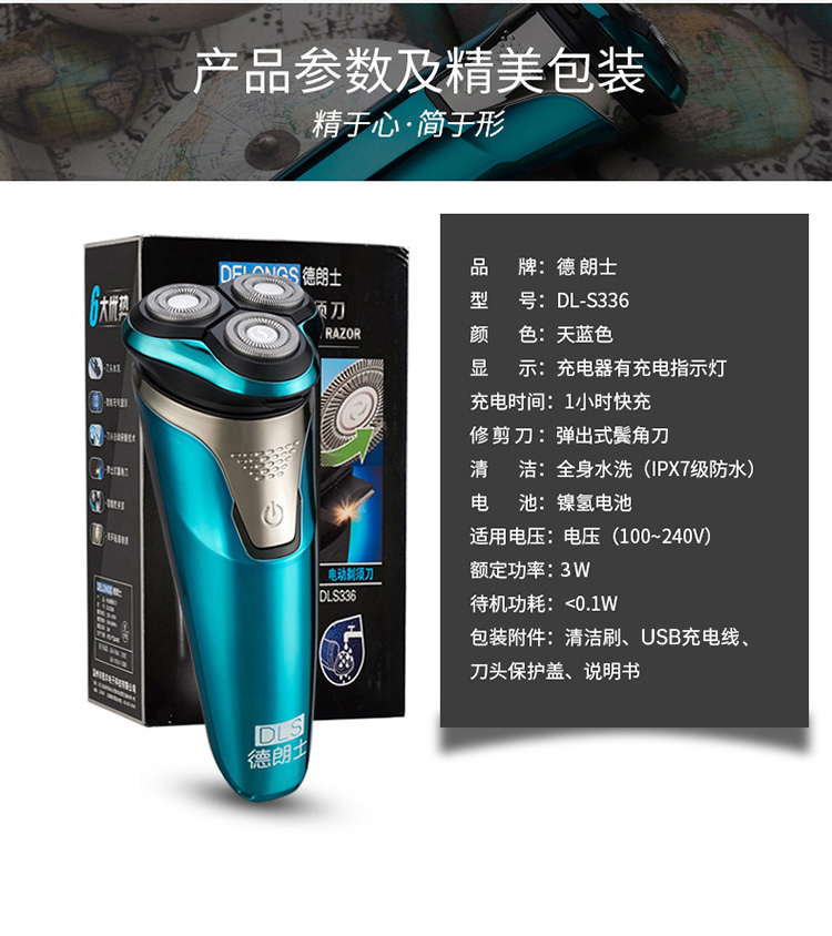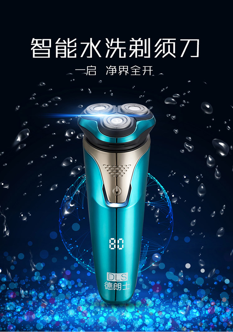 德朗士 电动剃须刀全身水洗 智能液晶显示 充电式刮胡刀 型号:DLS336
