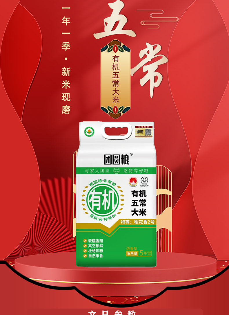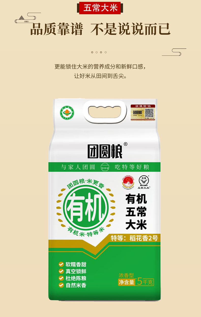 团圆粮有机五常大米团圆粮东北大米10斤双层真空包装5KG【2月2号开始物流停发 下单不要选择物流】春节爆仓发货时效延迟